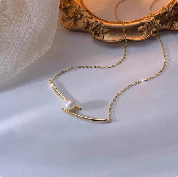 pearl necklace, gold pearl necklace, minimalist necklace, dainty gold necklace, freshwater pearl jewelry, modern jewelry, curved bar necklace, gold chain necklace, simple pearl necklace, layering necklace